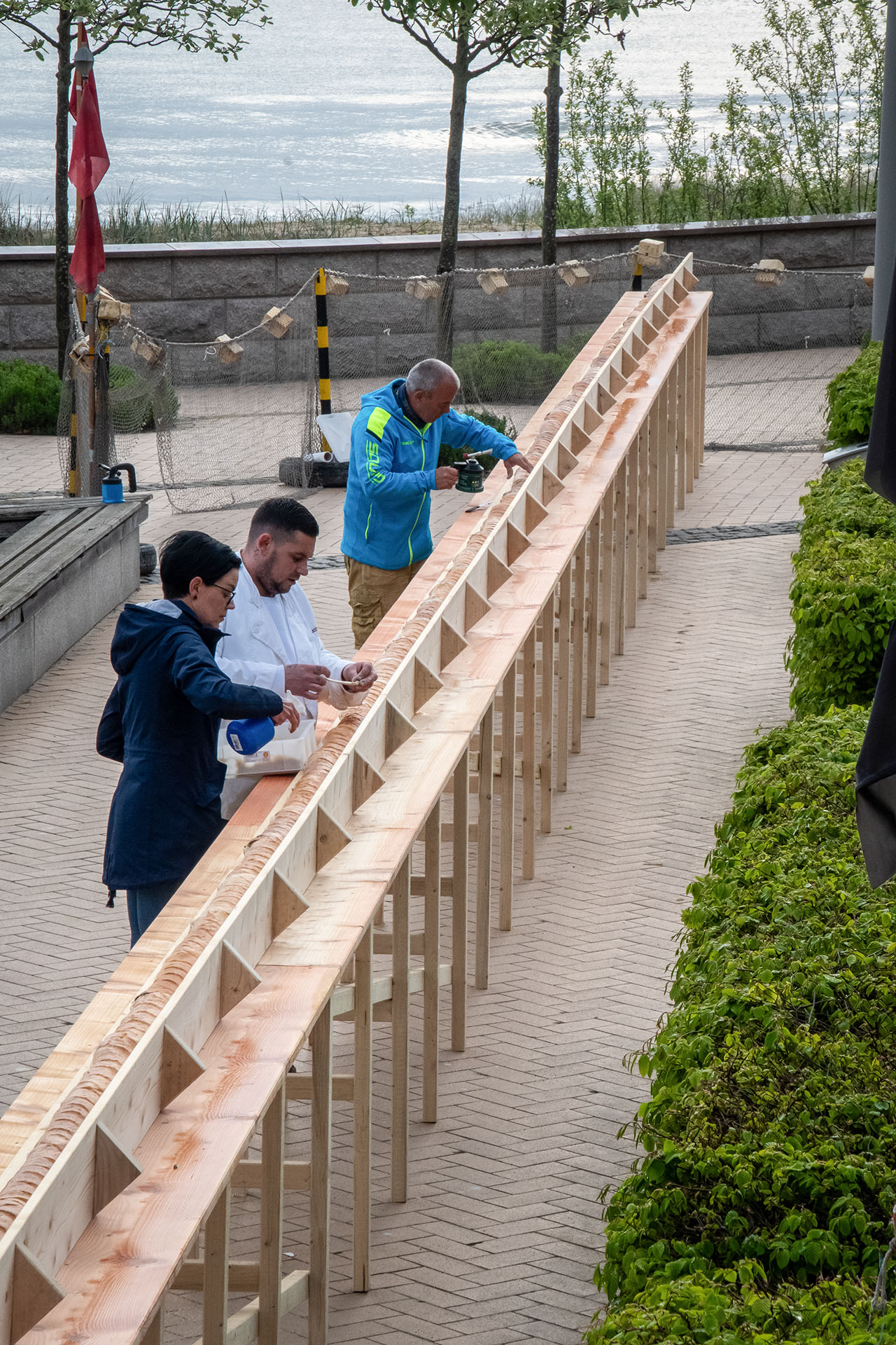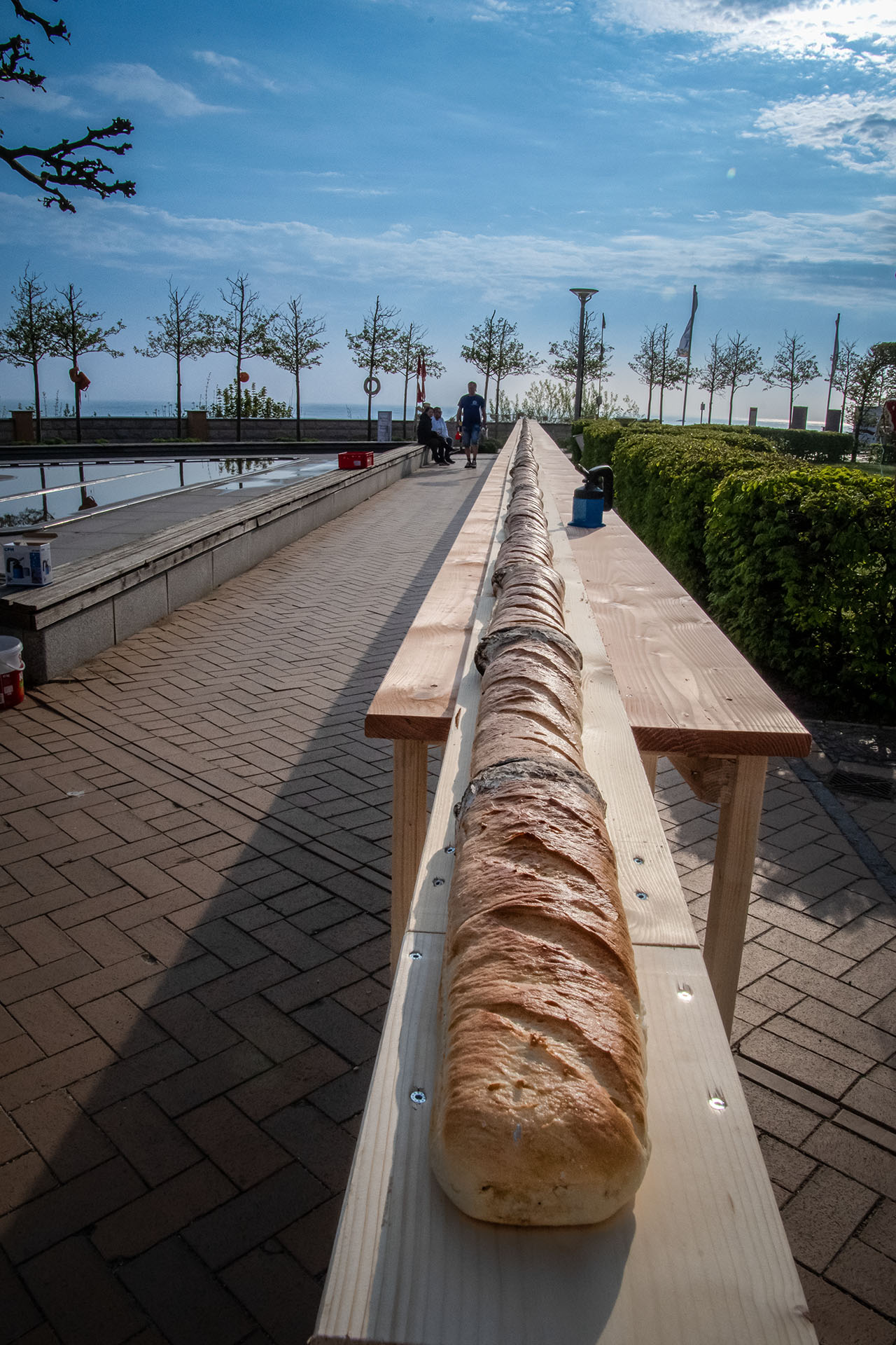 Der bisherige Weltrekord von Heringsdorf / Usedom sollte geschlagen werden und wir haben es geschafft – hergestellt wurde ein 30,95 m langes Fischbrötchen.
