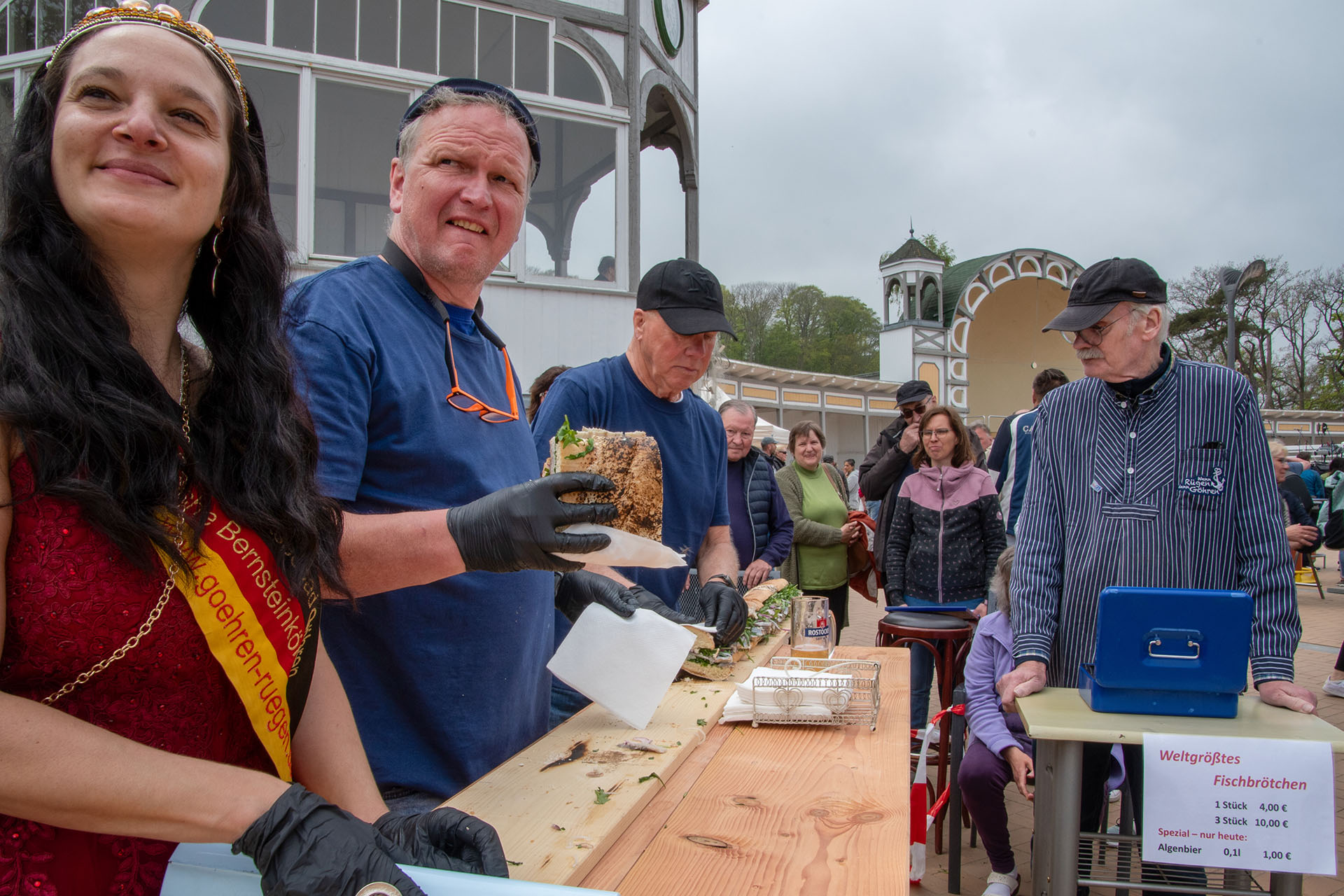 Am 04.05.2024 (Tag des Fischbrötchens) unternahmen der Fremdenverkehrs- und Gewerbeverein Göhren e. V. und der Messe & Catering Service Markus Pigard unter den gestrengen Augen einer Vertreterin des RID Rekord-Institut für Deutschland den Versuch den Weltrekord um das größte Fischbrötchen der Welt zu knacken.